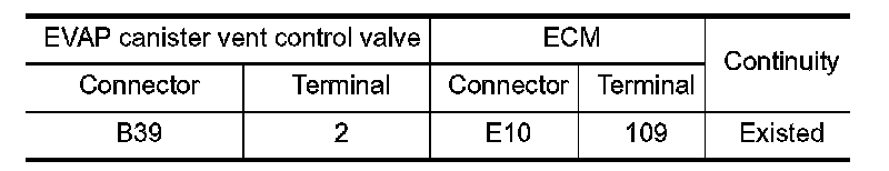 3.Check the continuity between EVAP canister vent control valve harness connector and ECM harness connector.