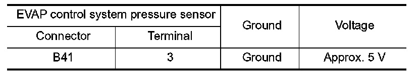 2.Check the voltage between EVAP control system pressure sensor harness connector and ground.