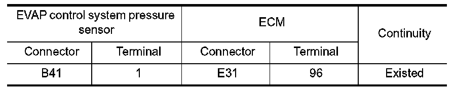 1.Check the continuity between EVAP control system pressure sensor harness connector and ECM harness connector.