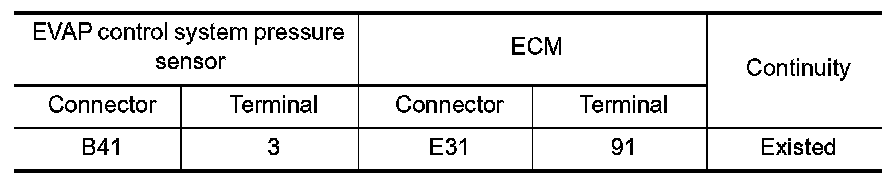1.Check the continuity between EVAP control system pressure sensor harness connector and ECM harness connector.