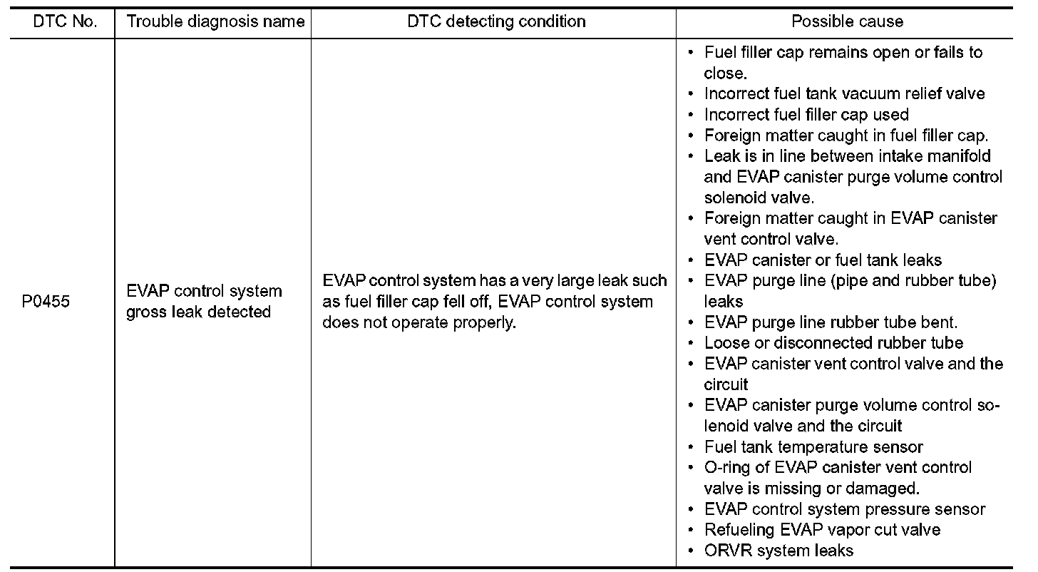 This diagnosis detects a very large leak (fuel filler cap fell off etc.) in EVAP system between the fuel tank and