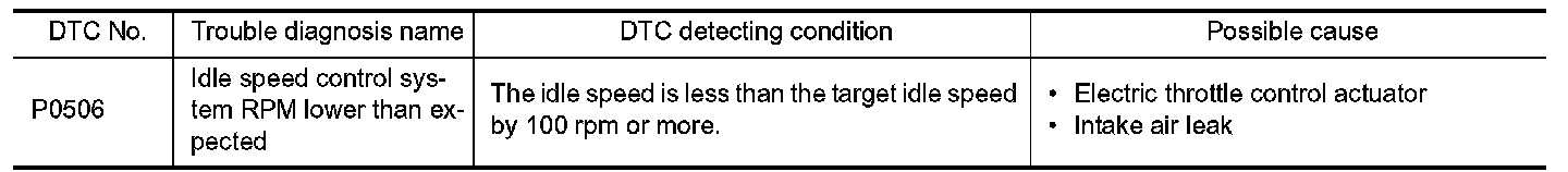 If DTC P0506 is displayed with other DTC, first perform the trouble diagnosis for the other DTC.