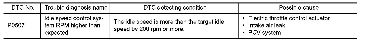 If DTC P0507 is displayed with other DTC, first perform the trouble diagnosis for the other DTC.