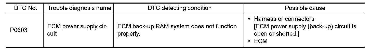 Battery voltage is supplied to the ECM even when the ignition switch is turned OFF for the ECM memory function of the DTC memory, the air-fuel ratio feedback compensation value memory, the idle air volume learning value memory, etc.