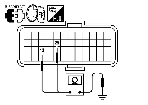Check continuity between TCM harness connector F16 terminal 13, 25 and ground.