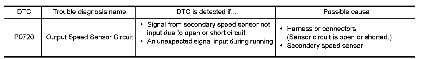 The secondary speed sensor detects the revolution of the CVT output shaft and emits a pulse signal. The pulse signal is transmitted to the TCM, which converts it into vehicle speed.