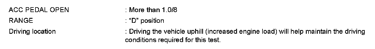 3.Start engine and maintain the following conditions for at least 12 consecutive seconds.