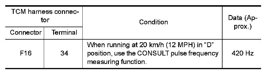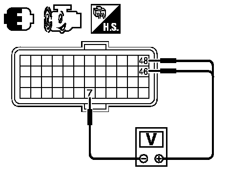 2.Check voltage between TCM harness connector F16 terminal 7, 46 and 7, 48.