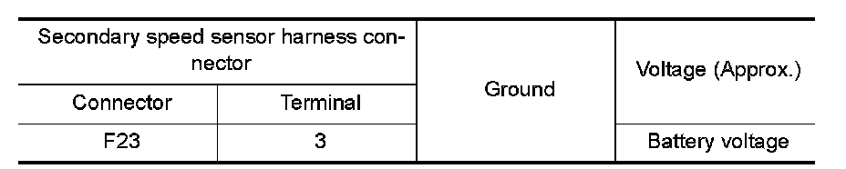 4.Check voltage between secondary speed sensor harness connector F23 terminal 1 and 3.
