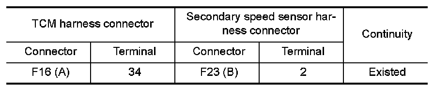 34 and secondary speed sensor harness connector F23 (B) terminal