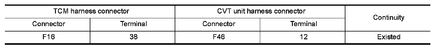 2.Check continuity between TCM harness connector terminals and CVT unit harness connector terminals.