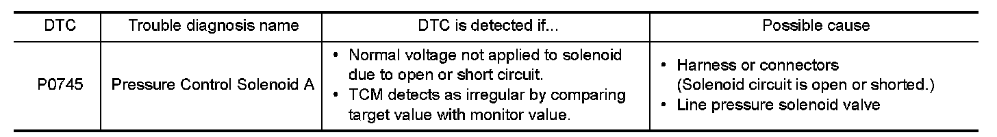 Check line pressure solenoid valve. Refer to "Component Inspection (Line Pressure Solenoid Valve)"