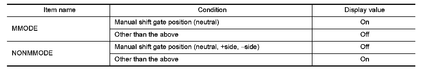 TCM sends the switch signals to combination meter via CAN communication line. Then manual mode switch position is indicated on the CVT position indicator.