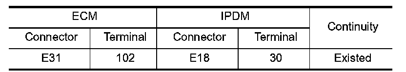 2.Check the continuity between IPDM E/R harness connector and ECM harness connector.