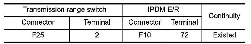 1.Check the continuity between transmission range switch harness connector and ECM harness connector.