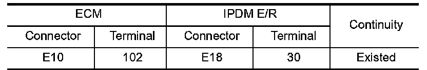 2.Check the continuity between IPDM E/R harness connector and ECM harness connector.