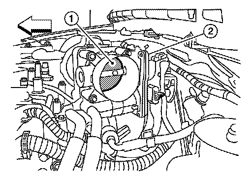 3.Check if foreign matter is caught between the throttle valve (1) and the housing.