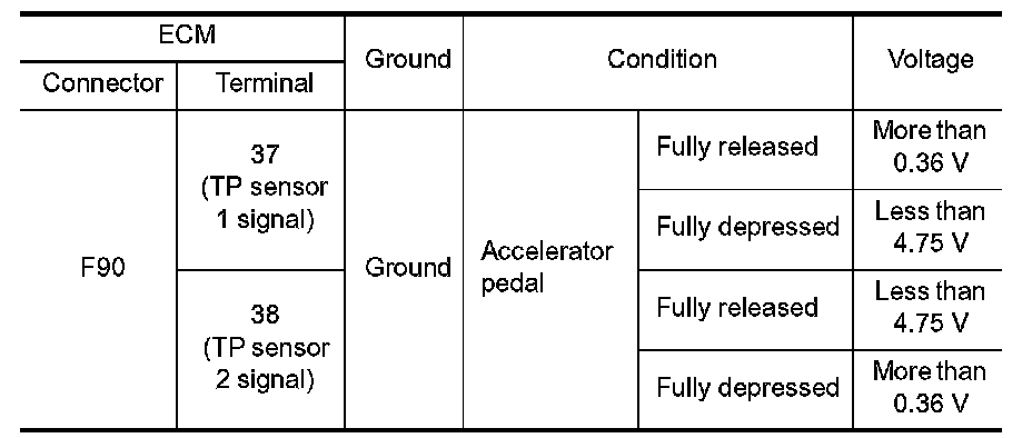 The throttle position sensor has two sensors. These sensors are a kind of potentiometers which transform the throttle valve position into output voltage, and emit the voltage signal to the ECM. In addition, these sensors detect the opening and closing speed of the throttle valve and feed the voltage signals to the ECM. The ECM judges the current opening angle of the throttle valve from these signals and the ECM controls the throttle control motor to make the throttle valve opening angle properly in response to driving condition.