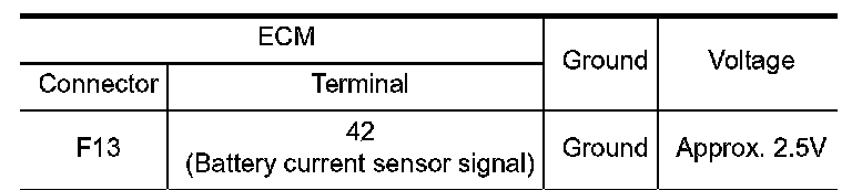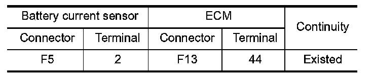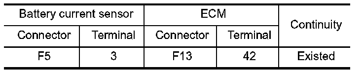 1.Check the continuity between battery current sensor harness connector and ECM harness connector.