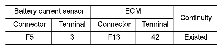 1.Check the continuity between battery current sensor harness connector and ECM harness connector.
