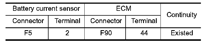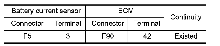 1.Check the continuity between battery current sensor harness connector and ECM harness connector.
