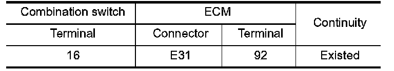 1.Check the continuity between ECM harness connector and combination switch.