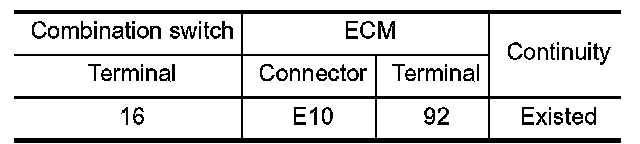 2.Check the continuity between combination switch harness connector terminals under following conditions.