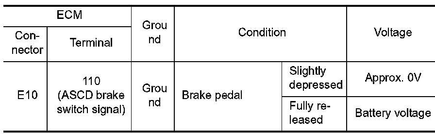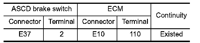 2.Check the continuity between ASCD brake switch terminals under the following conditions.