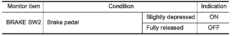 Select "BRAKE SW2" and check indication in "DATA MONITOR" mode.