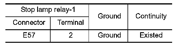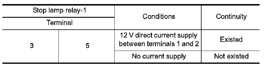 3.Check continuity between stop lamp relay-1 terminals under the following conditions.