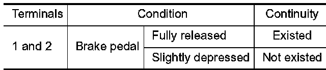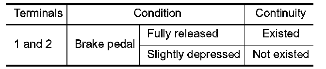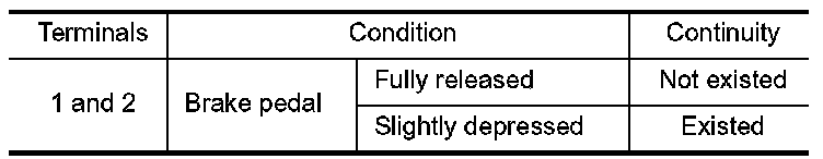 2.Check the continuity between stop lamp switch terminals under the following conditions.