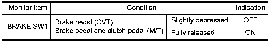 2.Select "BRAKE SW1" in "DATA MONITOR" mode with CONSULT.