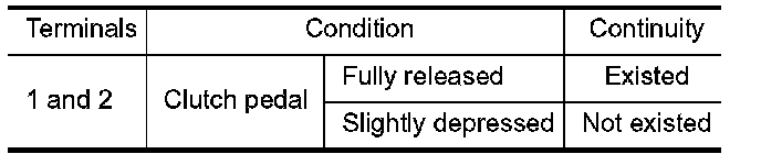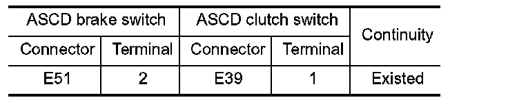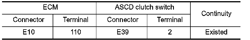 2.Check the continuity between ASCD clutch switch terminals under the following conditions.