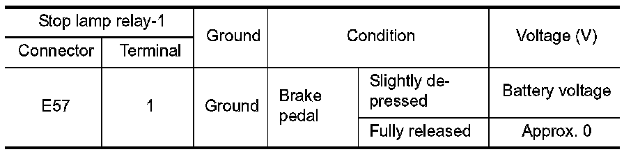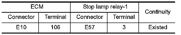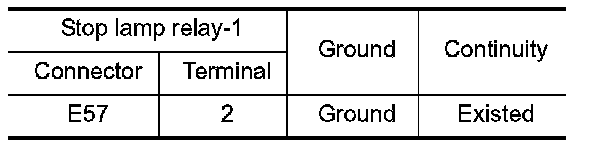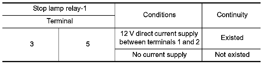 3.Check continuity between stop lamp relay-1 terminals under the following conditions.