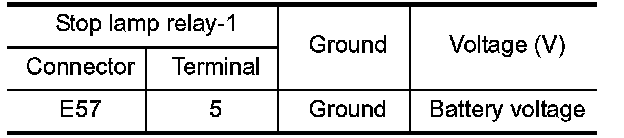 2.Check the voltage between stop lamp relay-1 harness connector and ground.