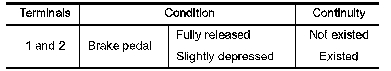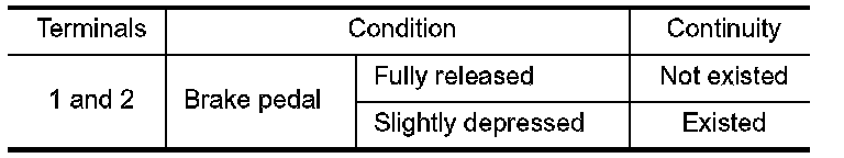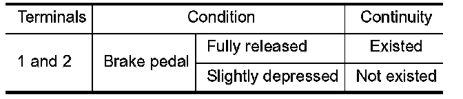 2.Check the continuity between stop lamp switch terminals under the following conditions.