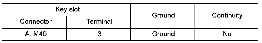 3.Check continuity between key slot harness connector M40 (A) terminal 3 and ground.