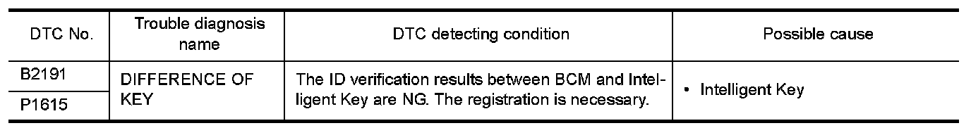 B2191, P1615 DIFFERENCE OF KEY