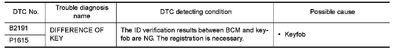 B2191, P1615 DIFFERENCE OF KEY