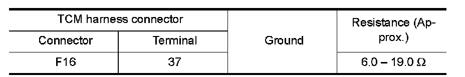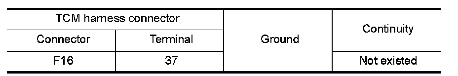 Check continuity between TCM harness connector F16 terminal 37 and ground.