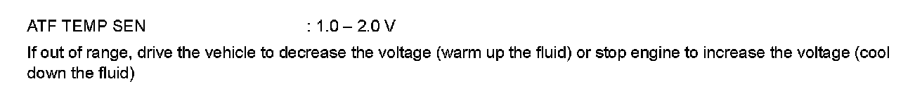 3.Make sure that output voltage of CVT fluid temperature sensor is within the range below.
