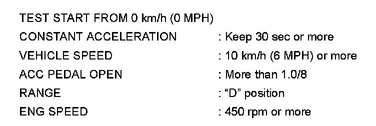 4.Start engine and maintain the following conditions for at least 30 consecutive seconds.