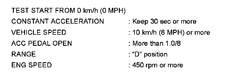 4.Start engine and maintain the following conditions for at least 30 consecutive seconds.