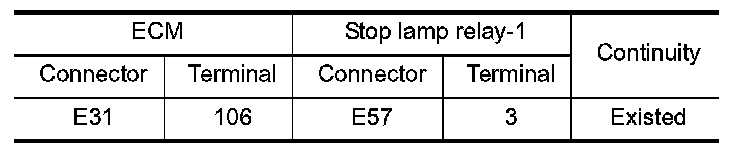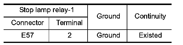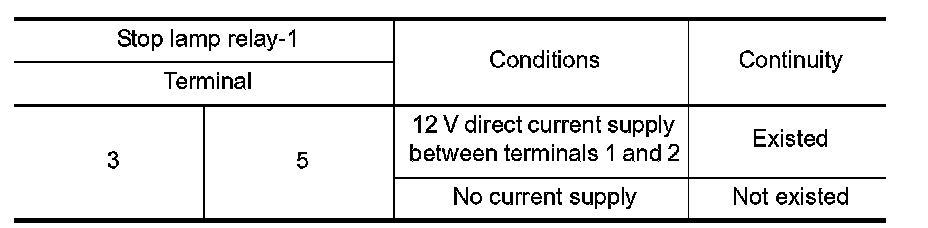 3.Check continuity between stop lamp relay-1 terminals under the following conditions.
