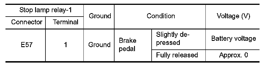NO- Replace stop lamp relay-1. For the relay number, Engine Control System For California. For the relay arrangement, Harness Layout Coupe (coupe models) or Harness Layout Sedan