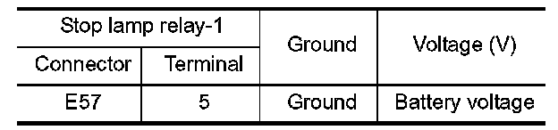 1.Check the voltage between stop lamp relay-1 harness connector and ground.