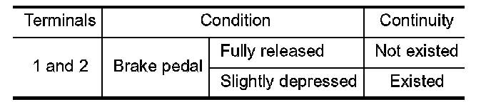 2.Check the continuity between stop lamp switch terminals under the following conditions.