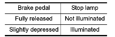 2.Check the stop lamp when depressing and releasing the brake pedal.