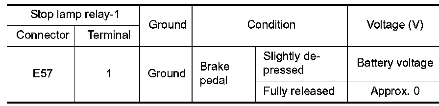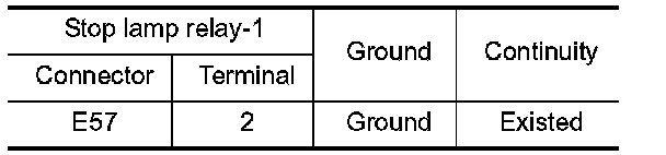 3.Check continuity between stop lamp relay-1 terminals under the following conditions.