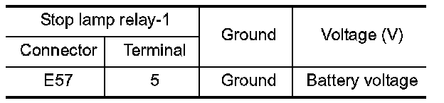 1.Check the voltage between stop lamp relay-1 harness connector and ground.